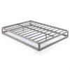 - Foam padded tape is added to the steel frame for noise-free use and non-slip tape on the wooden slats prevents your mattress from moving