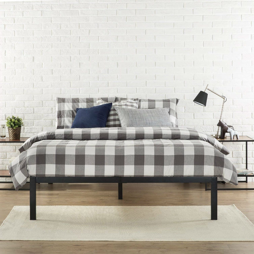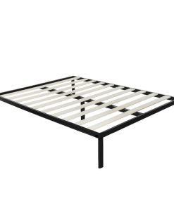 Full Size Modern Black Metal Platform Bed Frame with Wood Slats