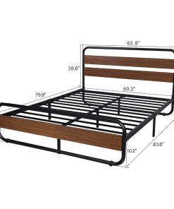 Queen Heavy Duty Modern Industrial Metal Wood Platform Bed Frame with Headboard